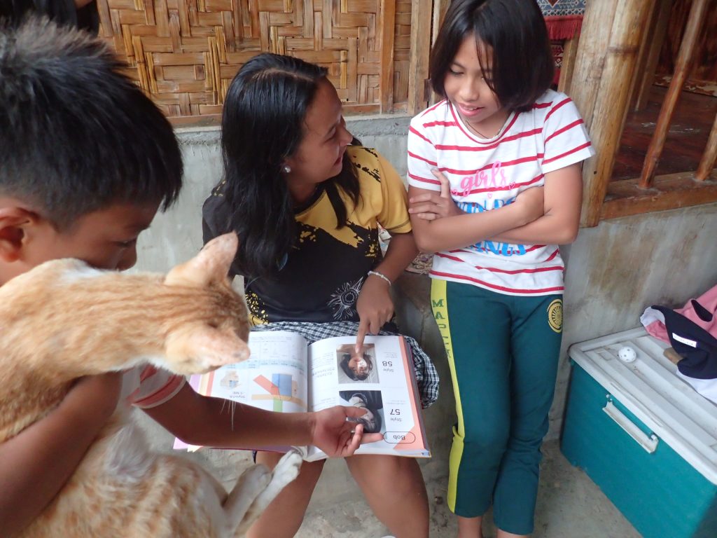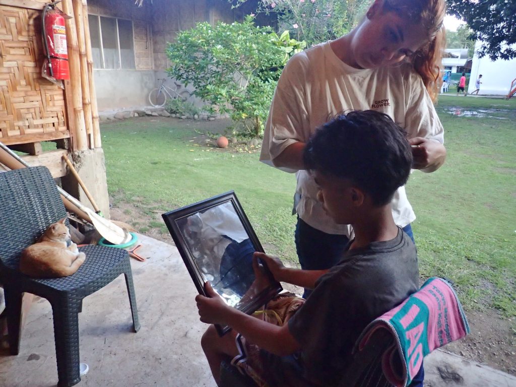 日本から持ってきたヘアカタログで「どの髪型にしてほしい?」と言われ、大興奮の女の子たち。