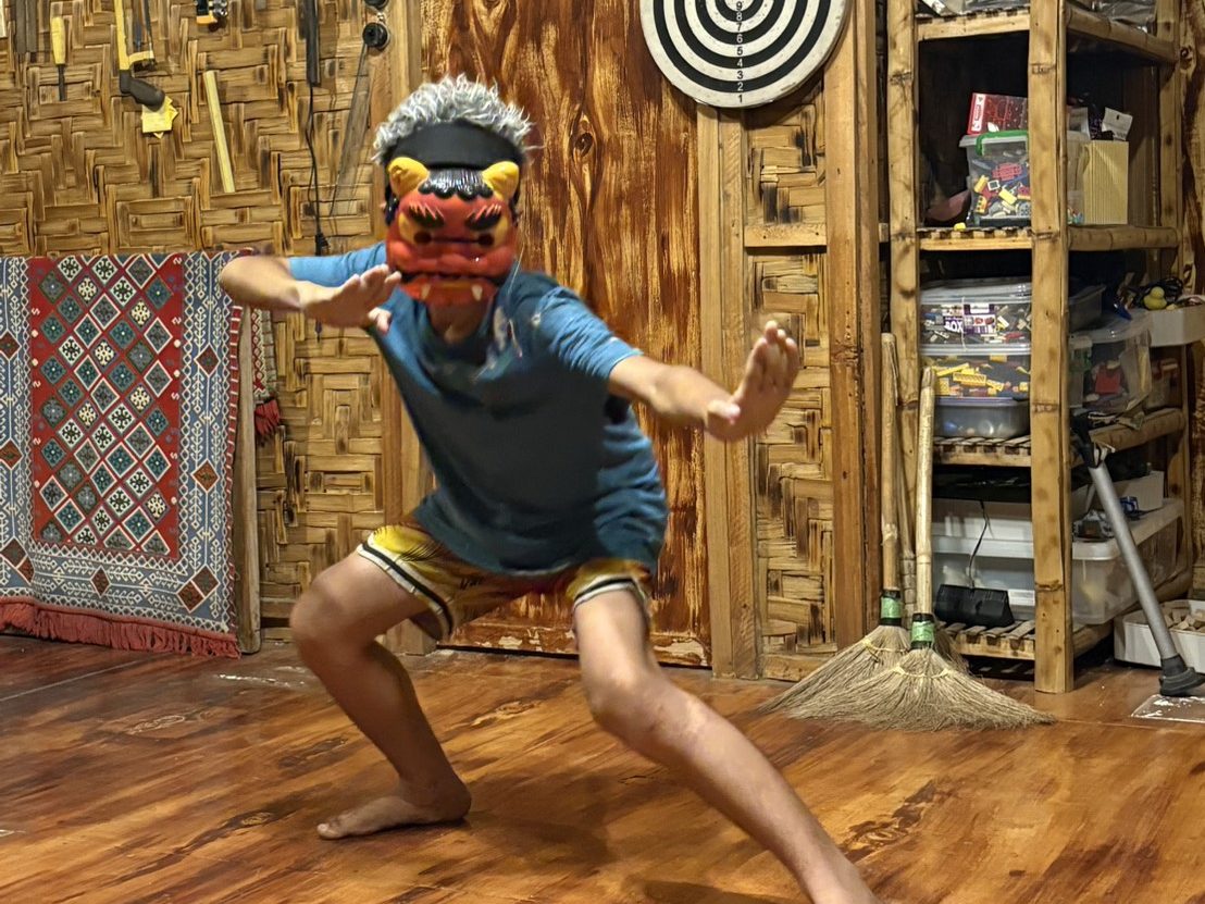 そして、作り終わったあとはとんとん相撲をしました。イージェイはドラゴンだそうなので、私はフィリピンの国鳥、フィリピンイーグルということにしました。(笑)