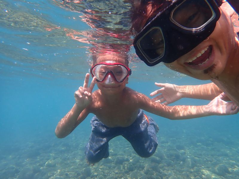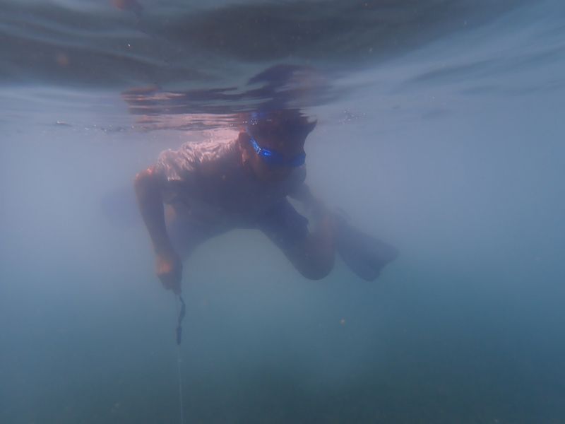 …と思ったら、そこからほんの5m泳いで離れただけで、びっくりするくらい水が澄んでいました!