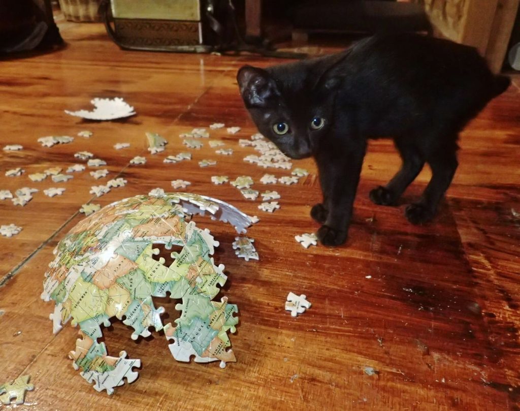 パズルの天敵、子猫登場!頼むから壊さないでね。