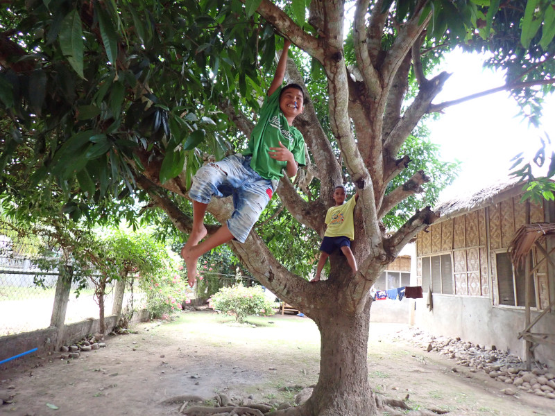 こどもたちは先日見た「猿の惑星」ごっこと言って木に登って遊んでます。