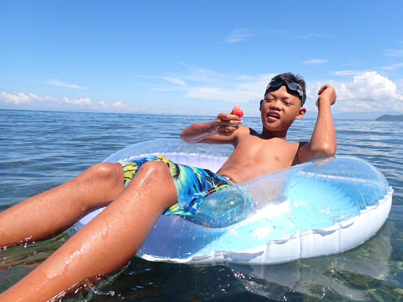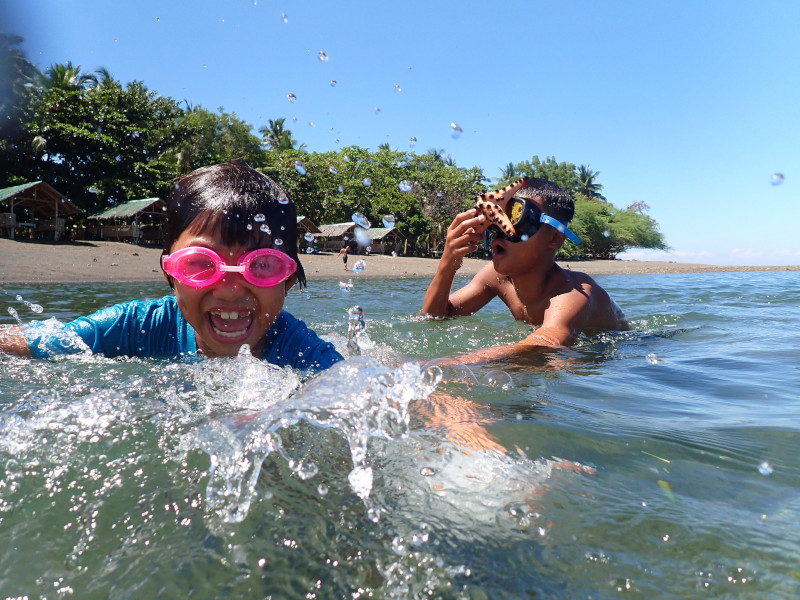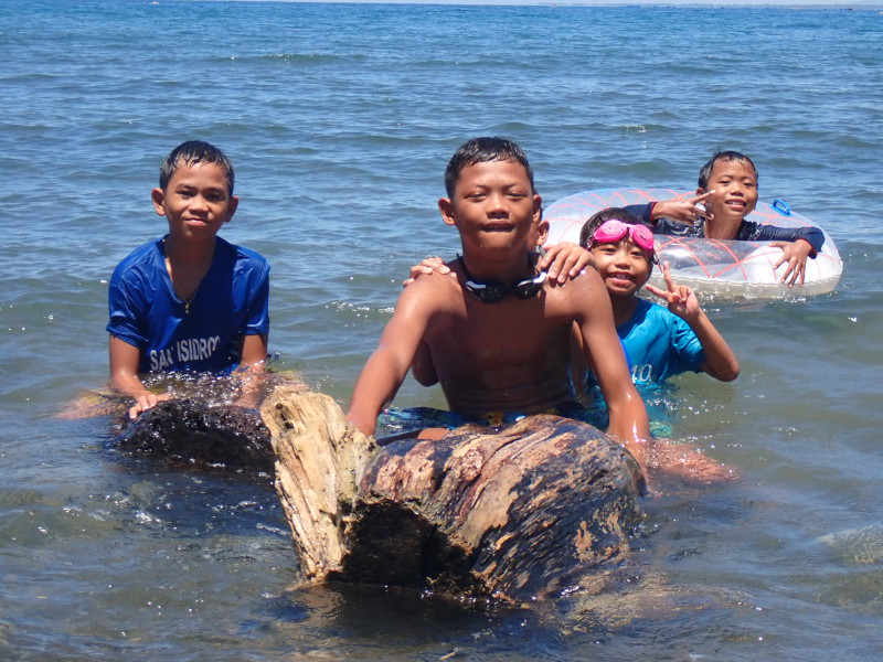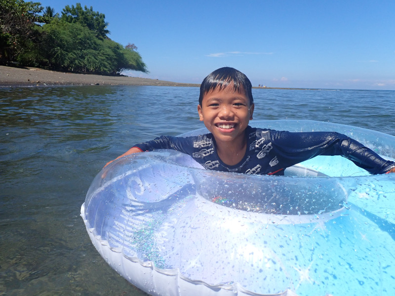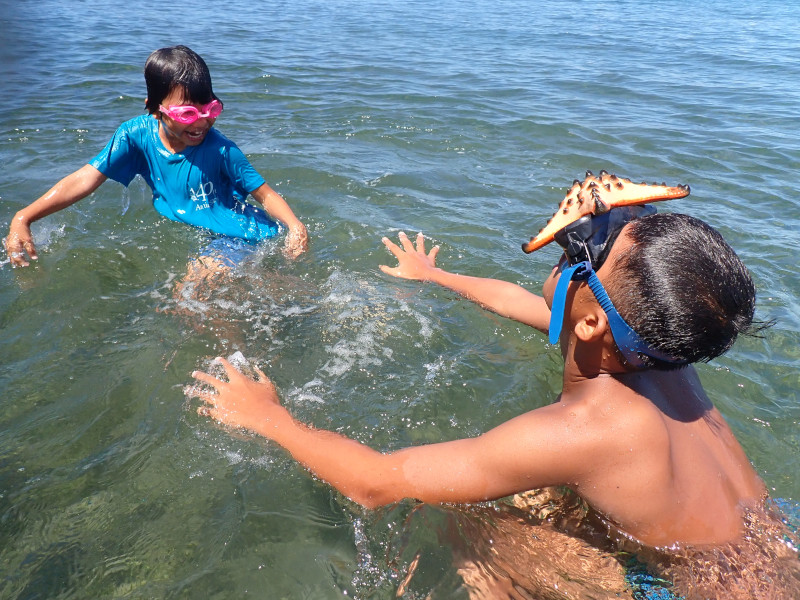 週末恒例のウラワビーチ!チムレイが食べているのはタンビス。