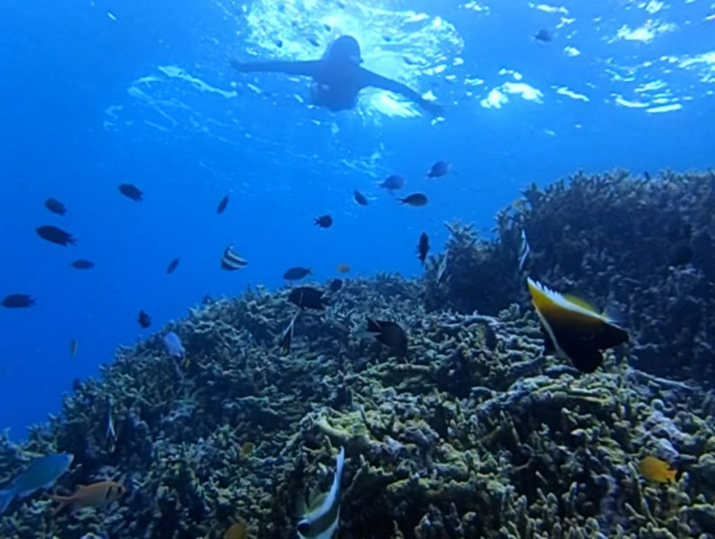 しかもこの砂浜の目の前が見事なサンゴ礁なんです!
