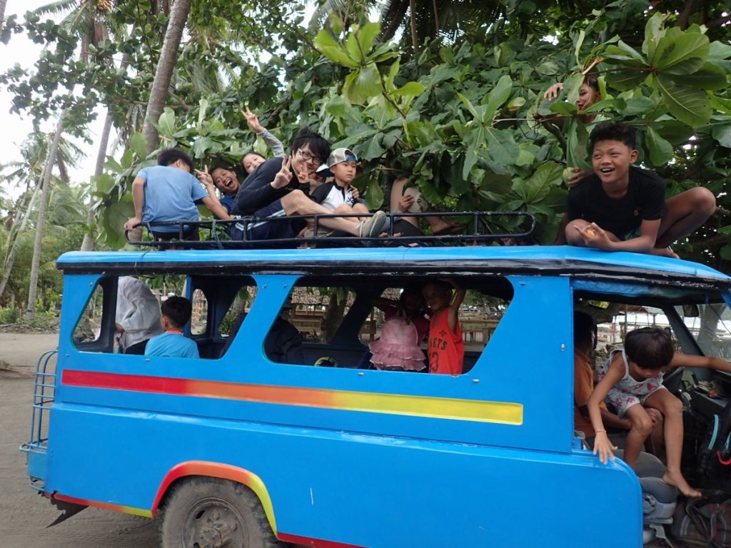 みんなでジープに乗り込んで移動、乗り切れない人は屋根の上です。