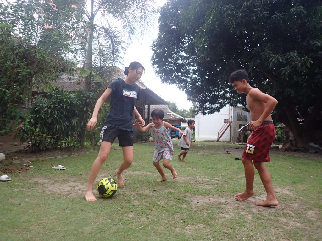 大学の後輩2人を連れて来てくれています。しかも、ダバオの町から車でハルカさんたちを