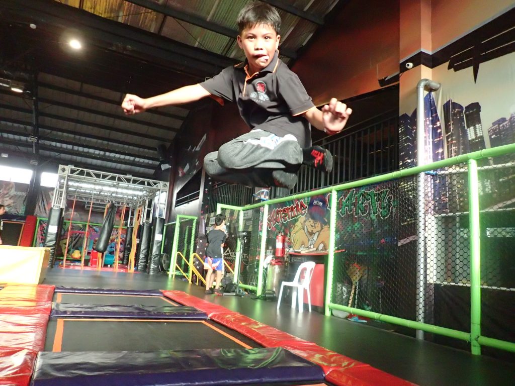 大きな体育館ほどの広さが、一面トランポリンだらけ、というこどもたちにはたまらない場所です。