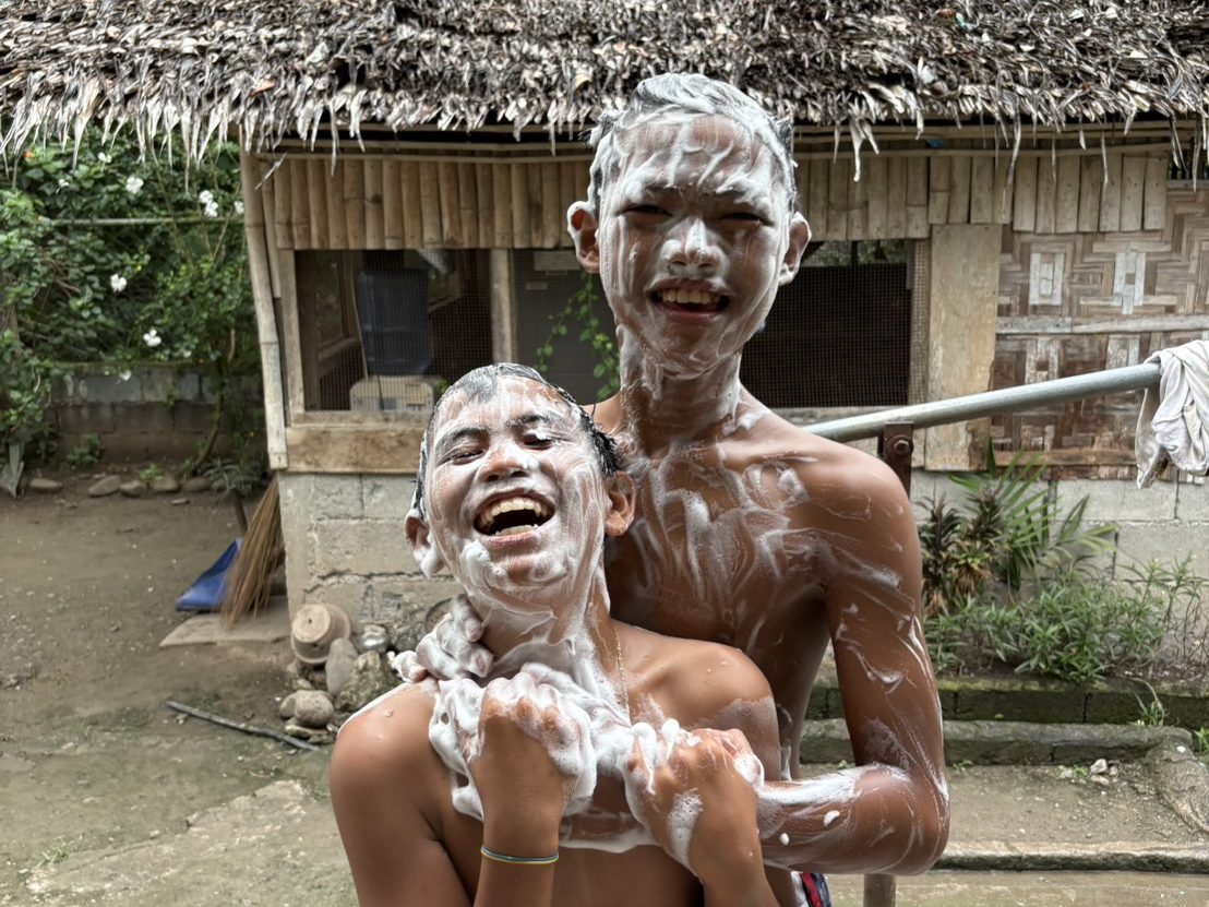 こちらは水浴び中のチムレイとリック。なぜかチムレイがリックの髪を洗ってあげていたのでカメラを向けたら、とってもいい笑顔が撮れました。
