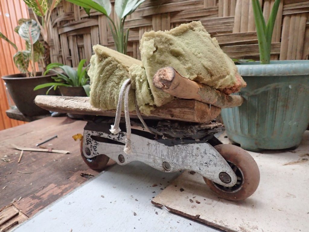 ローラーブレードの車輪の上に台座とハンドルを付けて乗れるようにしたのか!すごいぞ!