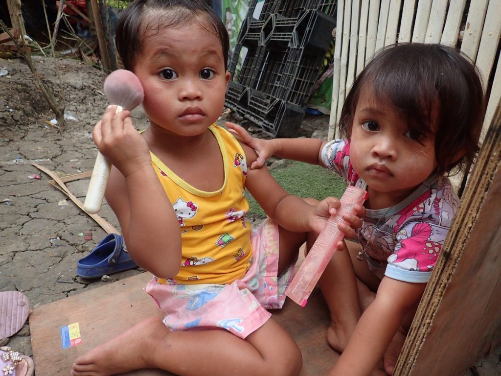 まだ使える化粧グッズを拾ってきてお母さんたち、お姉さんたちが使っているのを見て