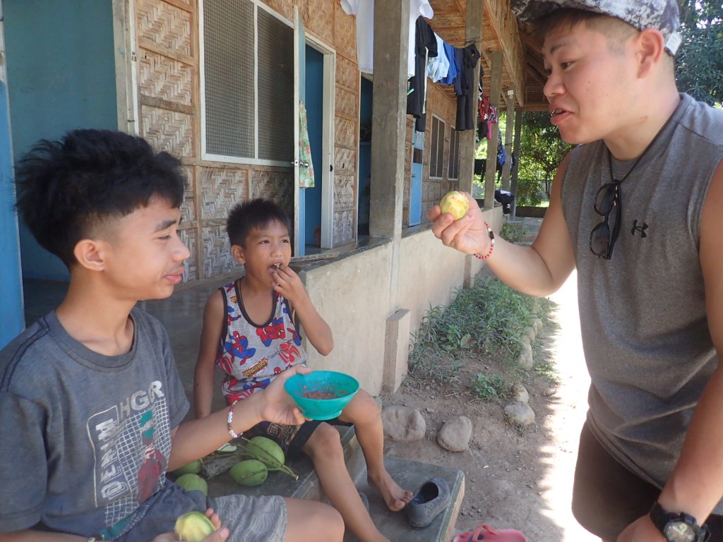 ギリギリ届かなくてとれないでいたマンゴーを、肩車で収穫!