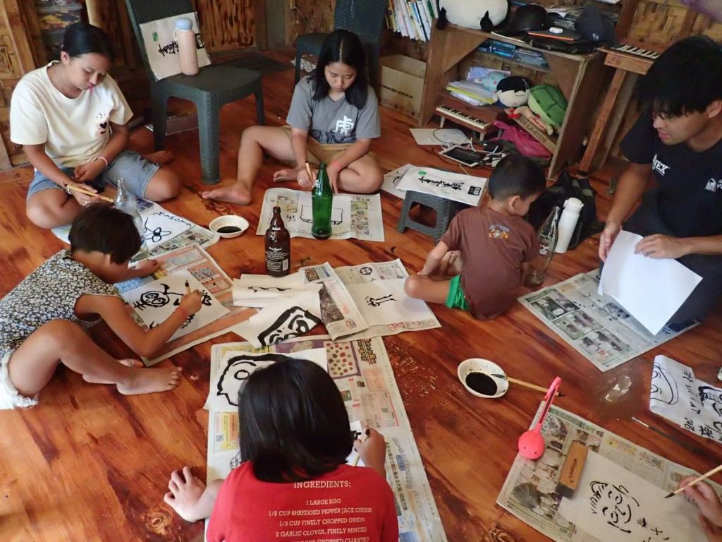 花を描いたり、家を描いたり、木を描いたりと、本当にみんな自由です。
