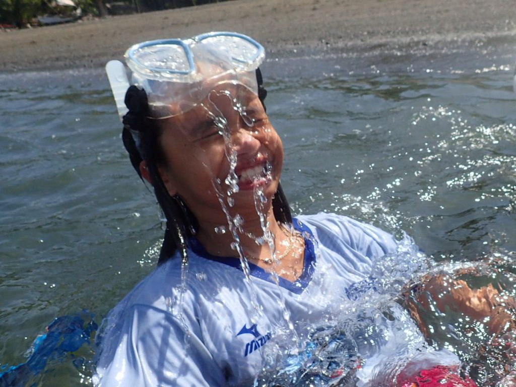 少しずつ海に慣れてきて、浮いて泳ぐことはできるようになってきたジセルですが、