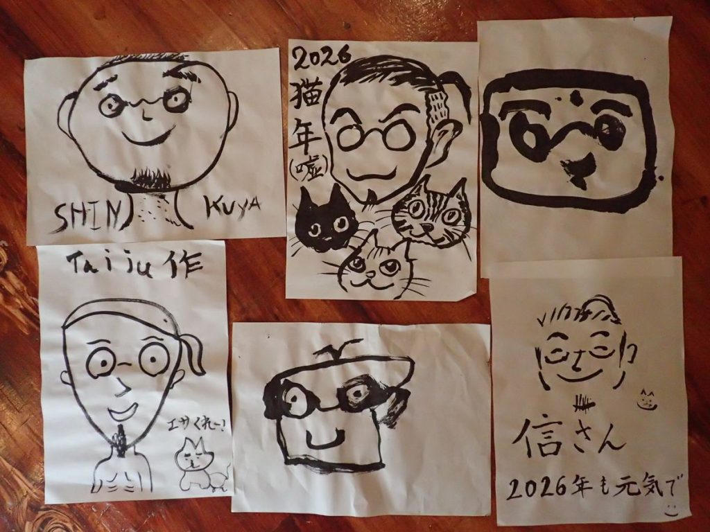 そして正月と言えば書初め!ハルさんが用意してくれていた書道セットの登場です。