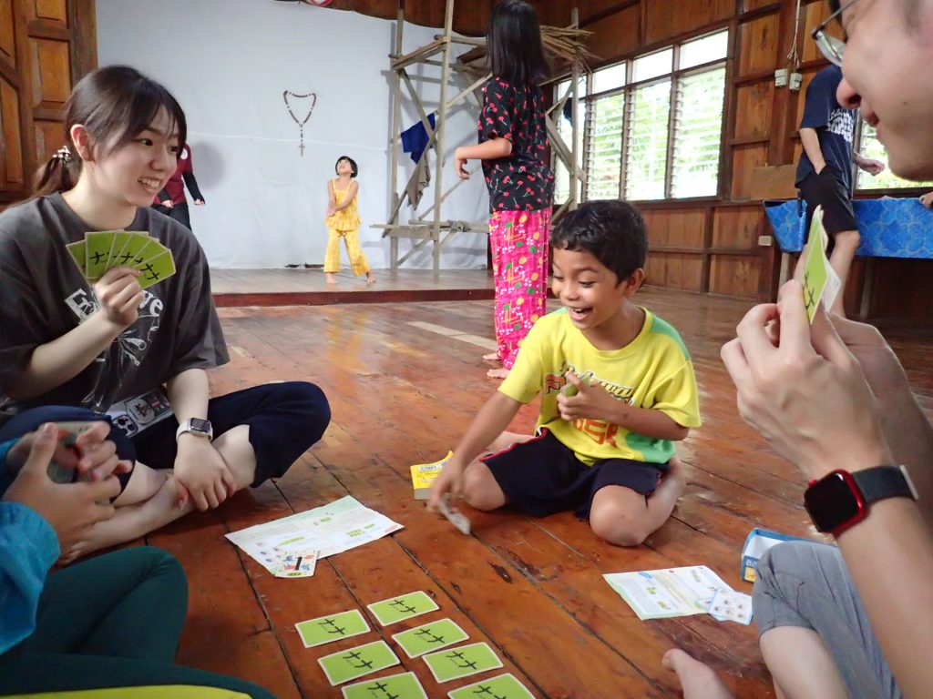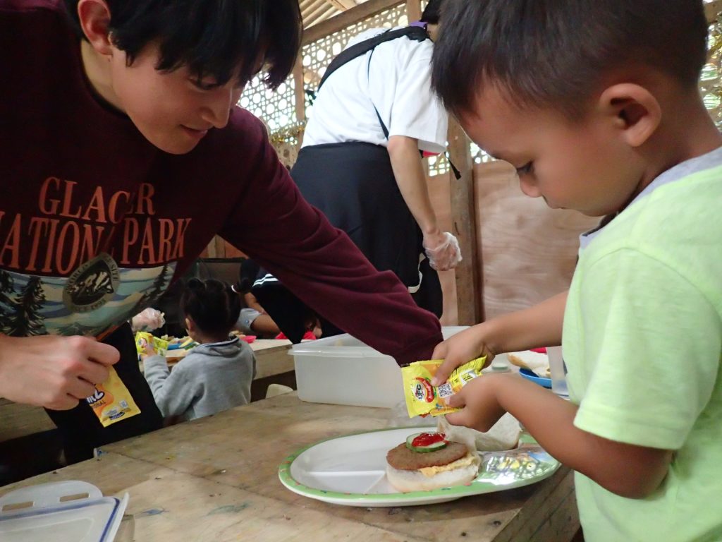 今日はゴミ山の横の集落のこども園で、こどもたちと「ハンバーガー作り」をしました。