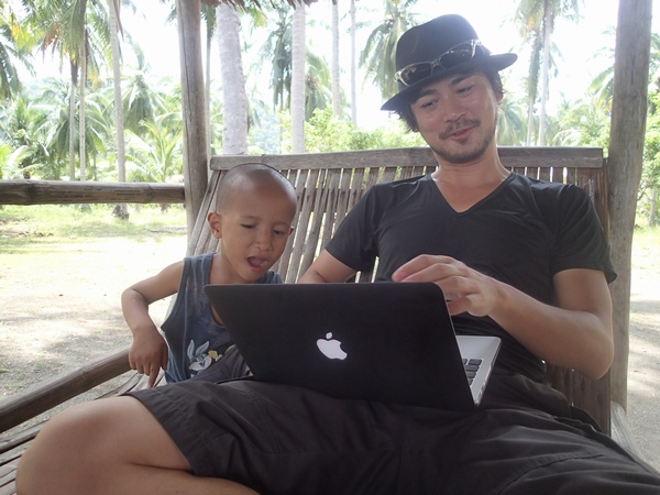 ウラワビーチはネットのつながりがいいそうで、海を眺めながらの作業です。