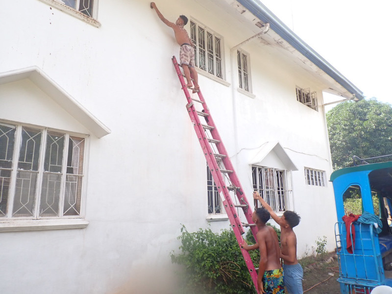 高いところも、ジャンジャンが隣の工事現場から借りてきたハシゴに登って掃除してくれました。
