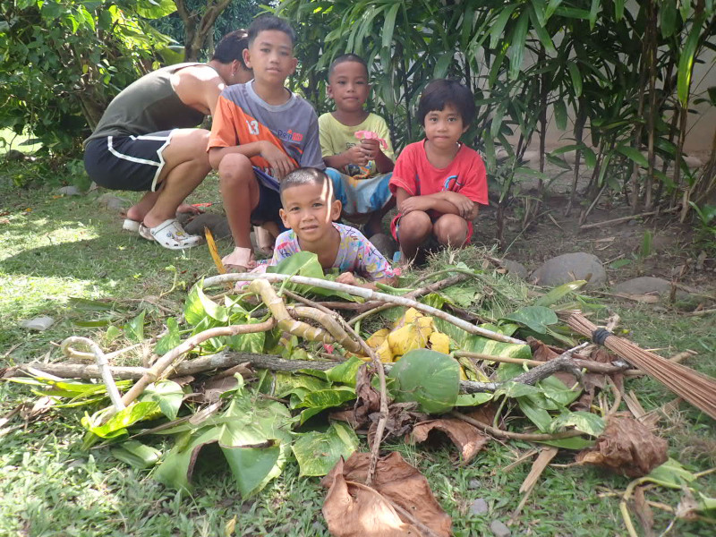 ちょうど学校が休みなので、こどもたちが敷地内の大掃除です。