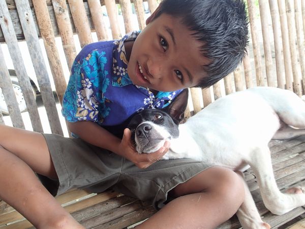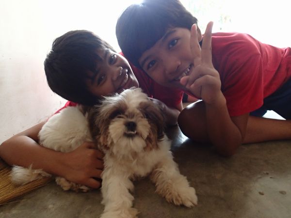 カテリンとジュリアンは、烏山さんちの犬、ラッキーをすごくかわいがっています。