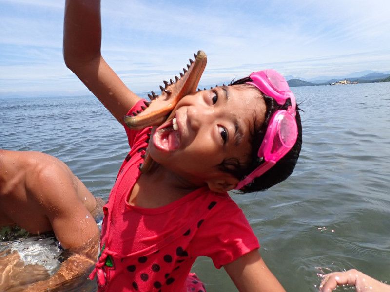 私がよくやってる「吸血ヒトデに襲われてるごっこ(笑)」でビジターさんたちを歓迎します。