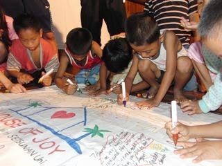 みんなで手形をとってそこにメッセージを書き、素敵なバナーも作りました。