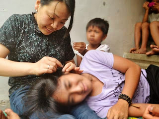 その横ではユキさんがこどもを一人ずつ呼んで「耳そうじ」をしてくれています。