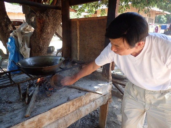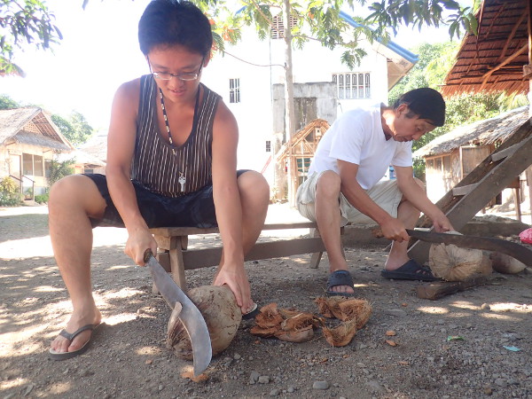隣で調理用に炊いていた火をつかって、ココナツを炙って削りやすくする作戦!