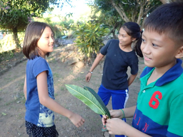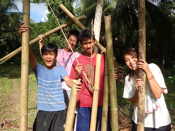 逆に、ダバオから来た子たちのほうも、木に登ったり葉っぱで風車を作ったり、