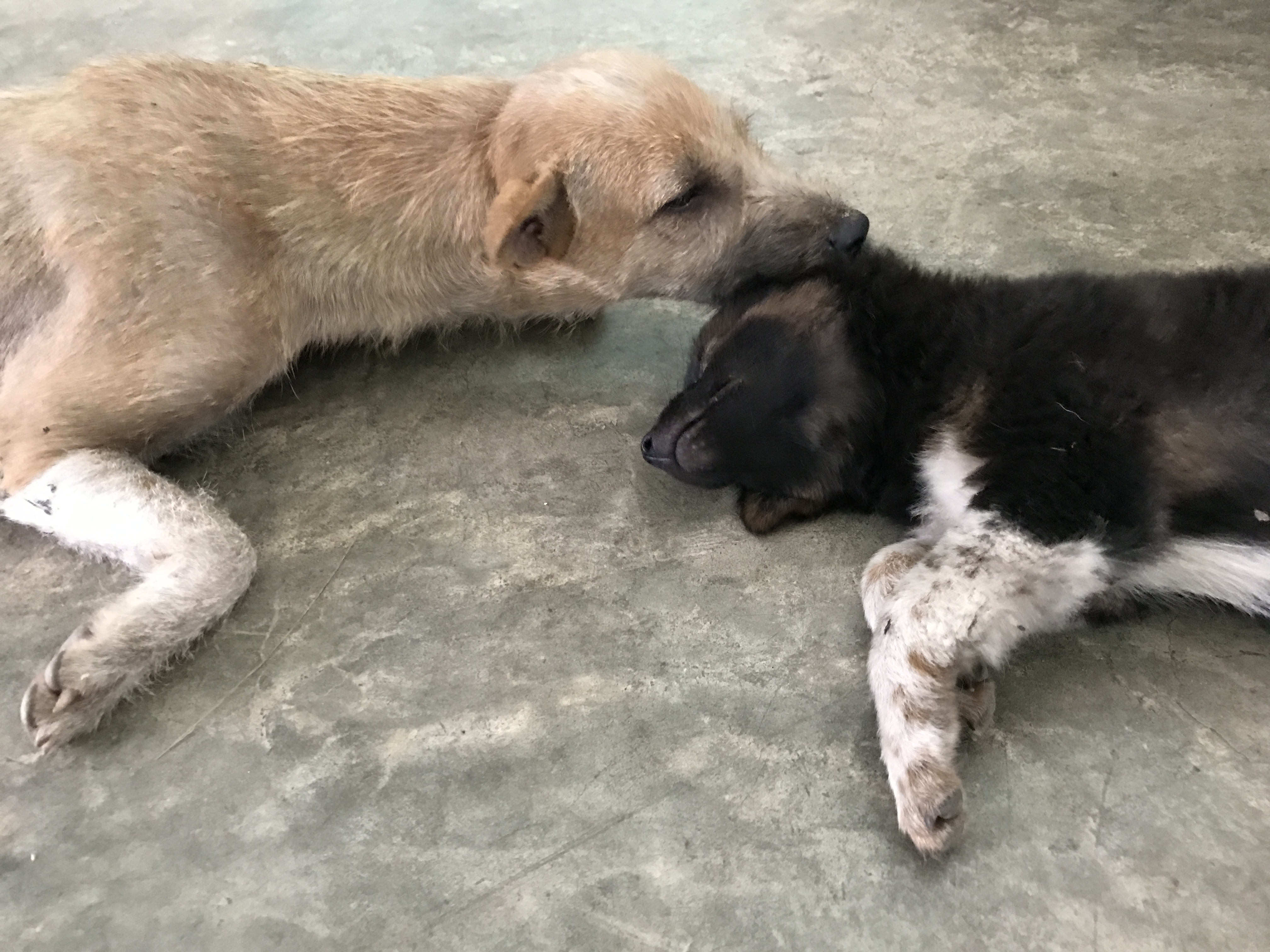 最近子どもを産んだブラウニーはまだまだ子育て真っ只中で、今日は私が名づけたまる子とじゃれあっていました。