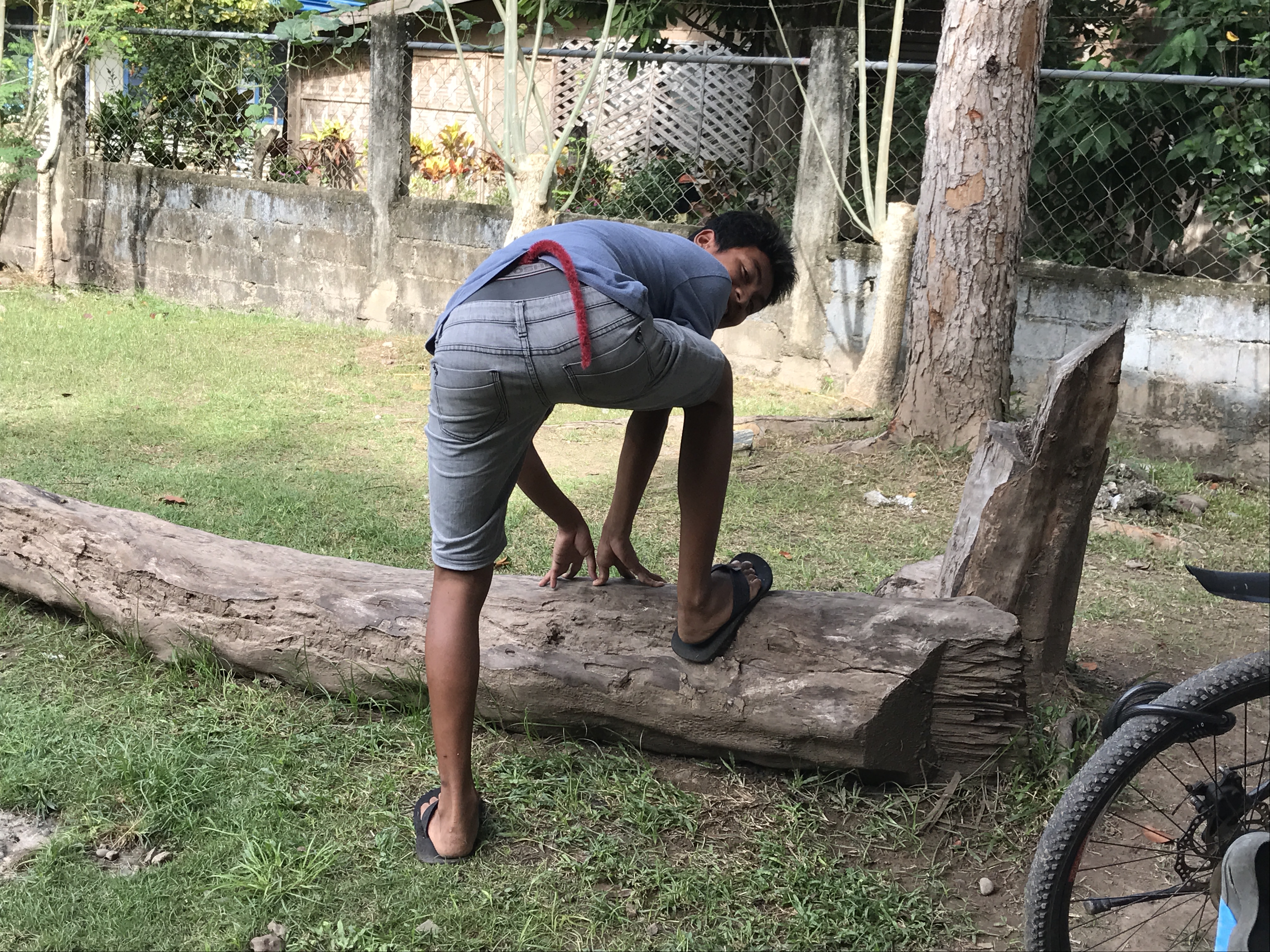 柱にわっかが入ると、これ見よがしに貼ってある100ペソが手に入ると聞き自分もさっそく挑戦!