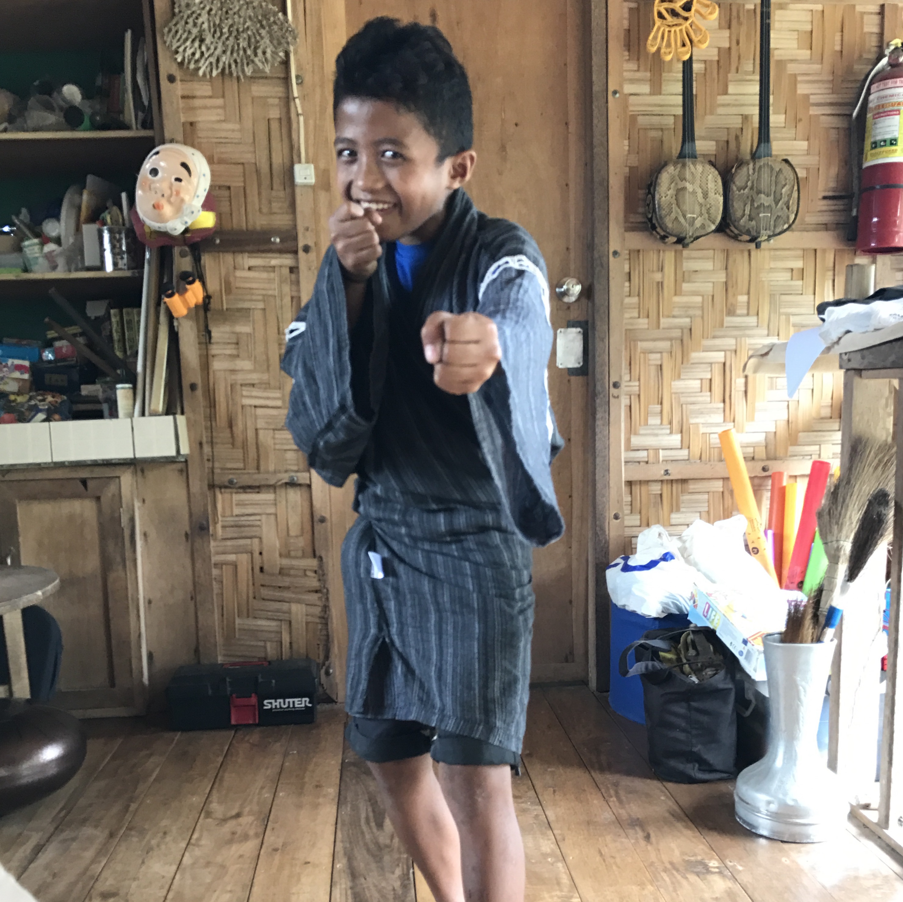 ジェイエムはダイキが着ている甚平を借りて大はしゃぎ!