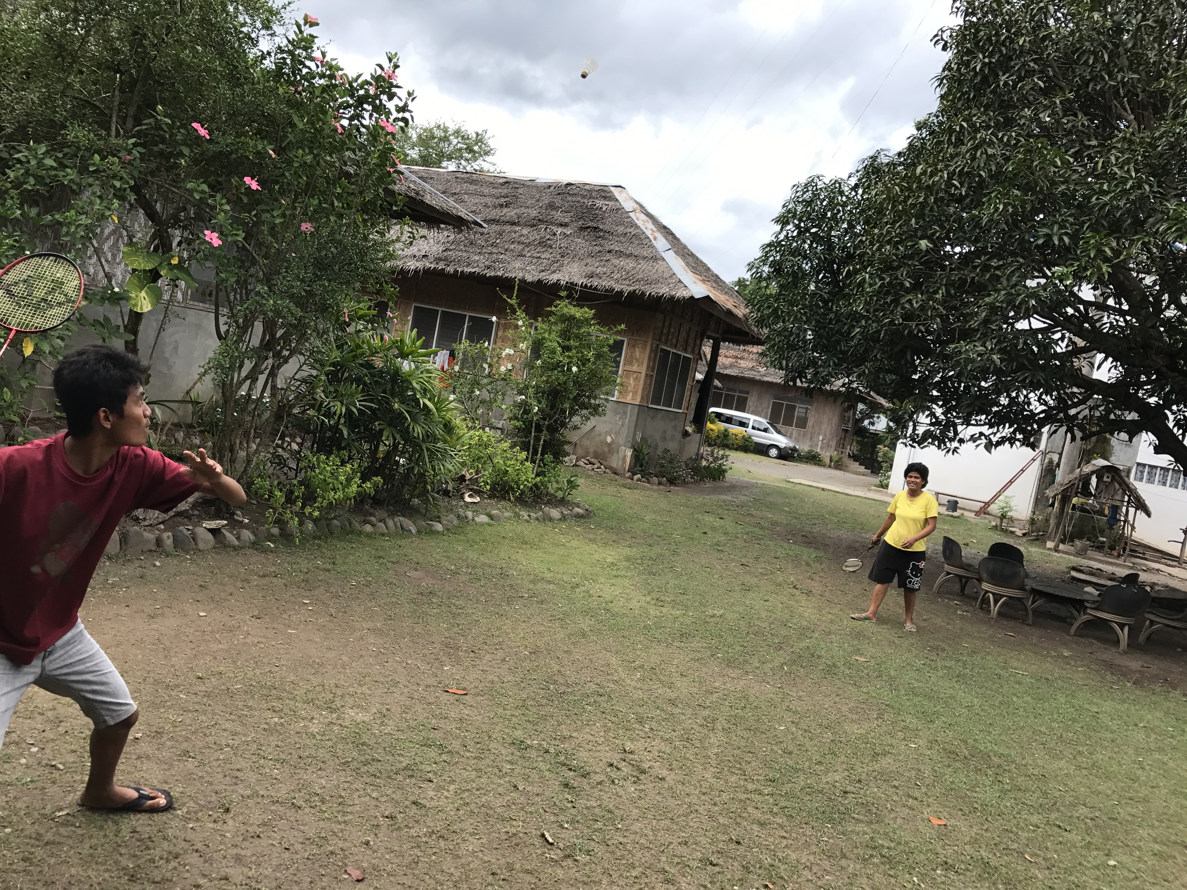 風が強いのにバドミントンをやり始めました。