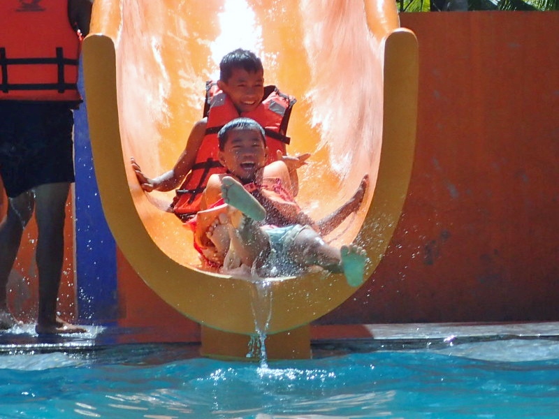 なんと、これまで以上に大きくて、高いウォータースライダーが完成してまして、楽しさもぐんとアップしてます。