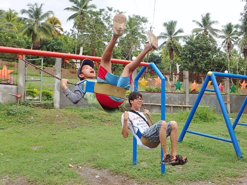 男の子たちは遊具も活用した「ティクソ」に夢中です。