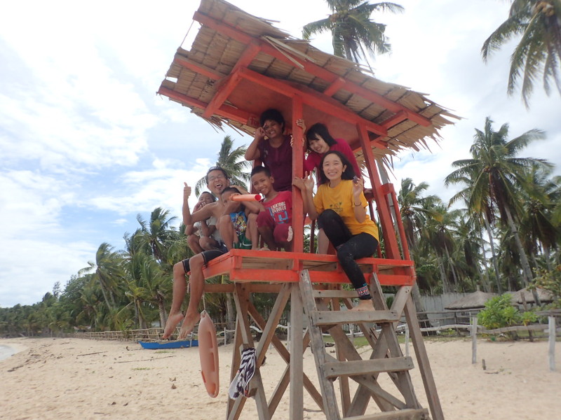 ダヒカンビーチに素敵な見張り台ができていて、登らせてもらってご機嫌な私たち。
