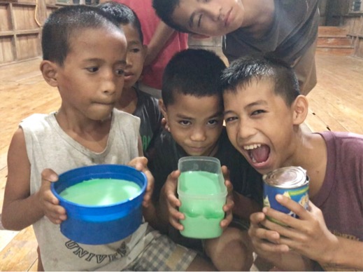 最近、夜はクリスマスに向けて、歌やダンスの練習を頑張っています。そんな子ども達に、サキさんと私で、練習後に食べるゼリーを作りました!ゼリー用の粉と、コンデンスミルクと、砂糖を混ぜて、冷やしたものなのですが、すごい色になりました、、(笑)でも、子どもたちは「美味しい!」と言って、おかわりまでしてくれました。ありがとよ、子ども達(^_^;)