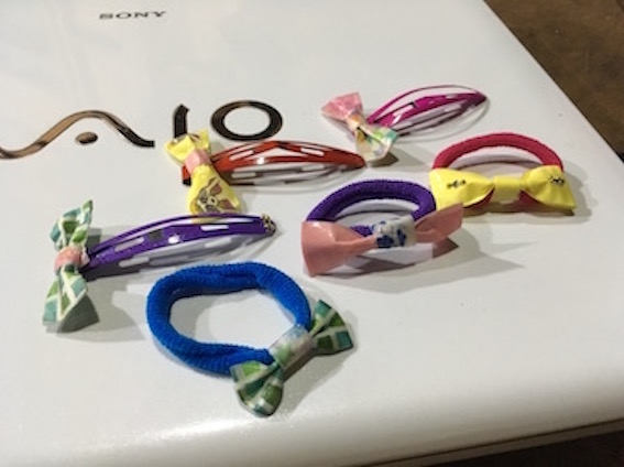 マスキングテープはリボンの形にしてゴムやヘアピンにしました。