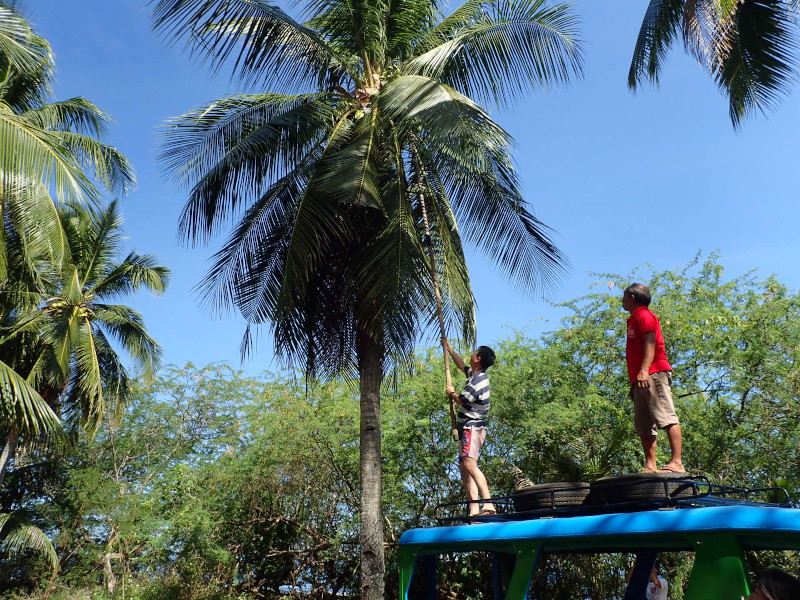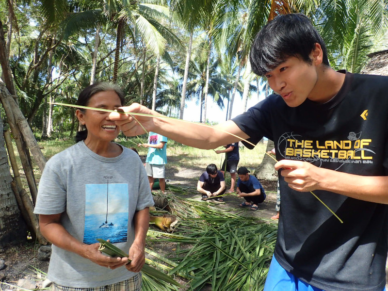 今日はそんな若者たちを連れてウラワビーチへ行き、ヤシの葉を割いてホウキづくりをする体験をしてもらいました。