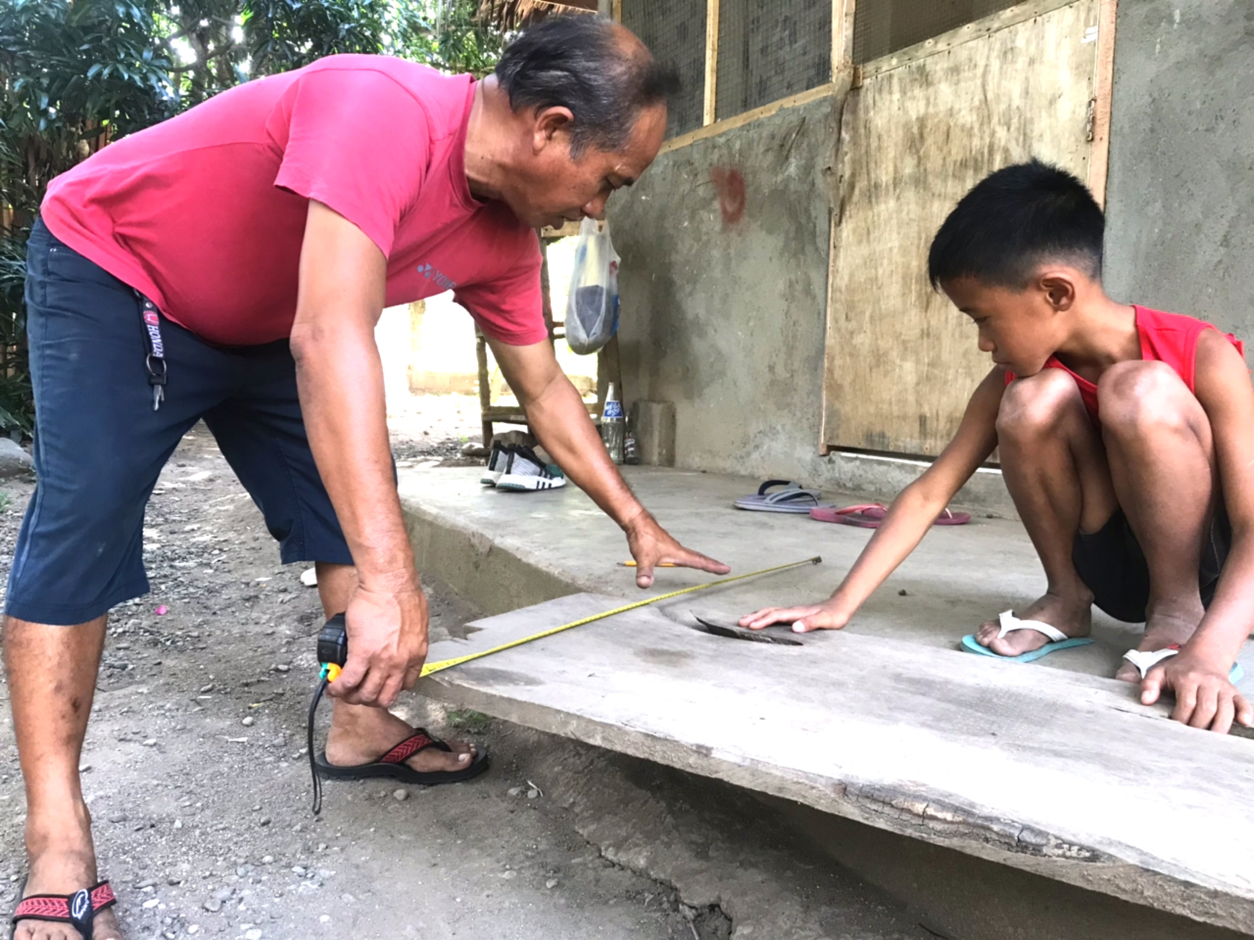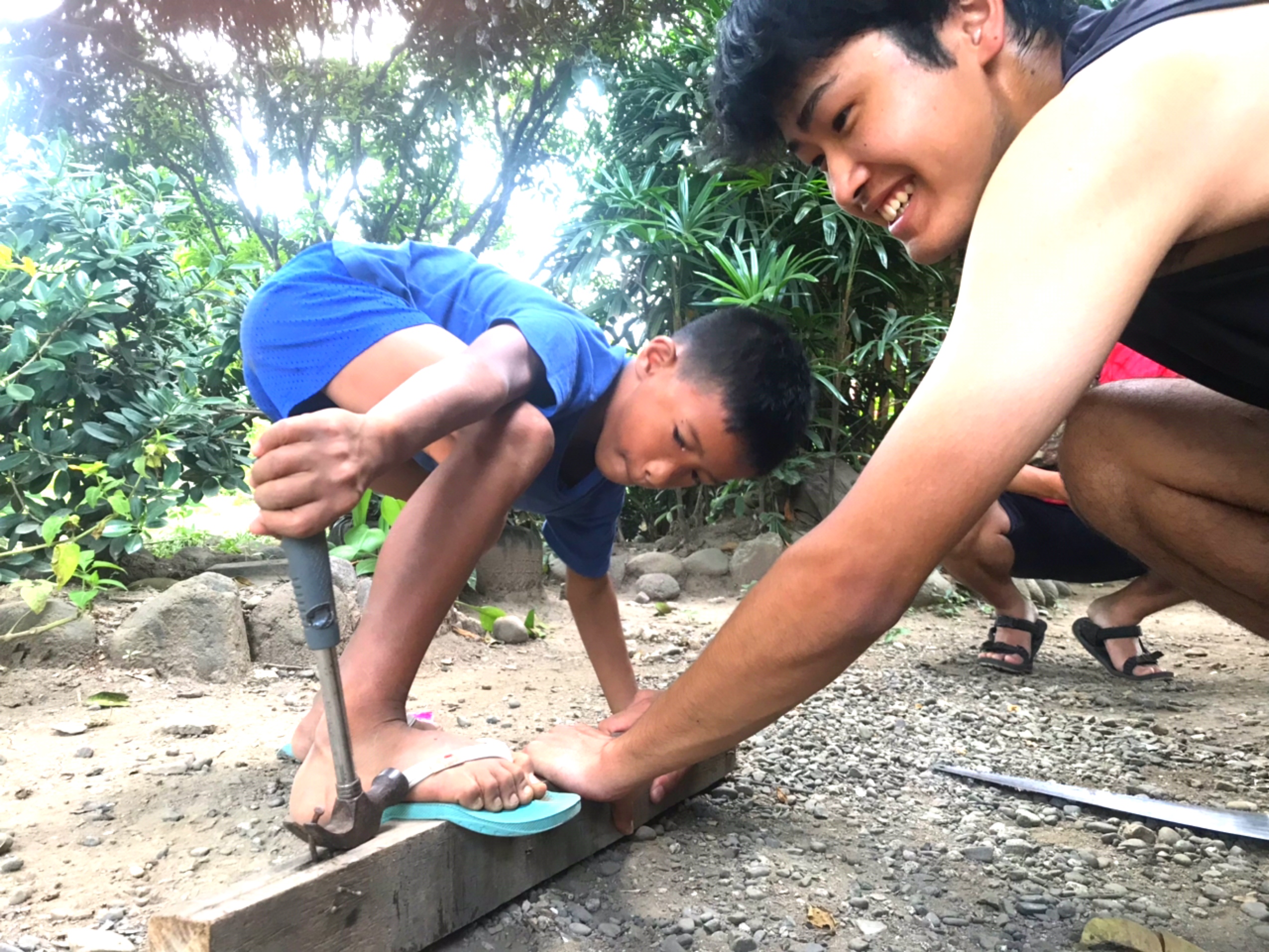 ハウスオブジョイの敷地内にある「廃材」を使って、スタッフのフィデルさんが手際よく進めていきます。