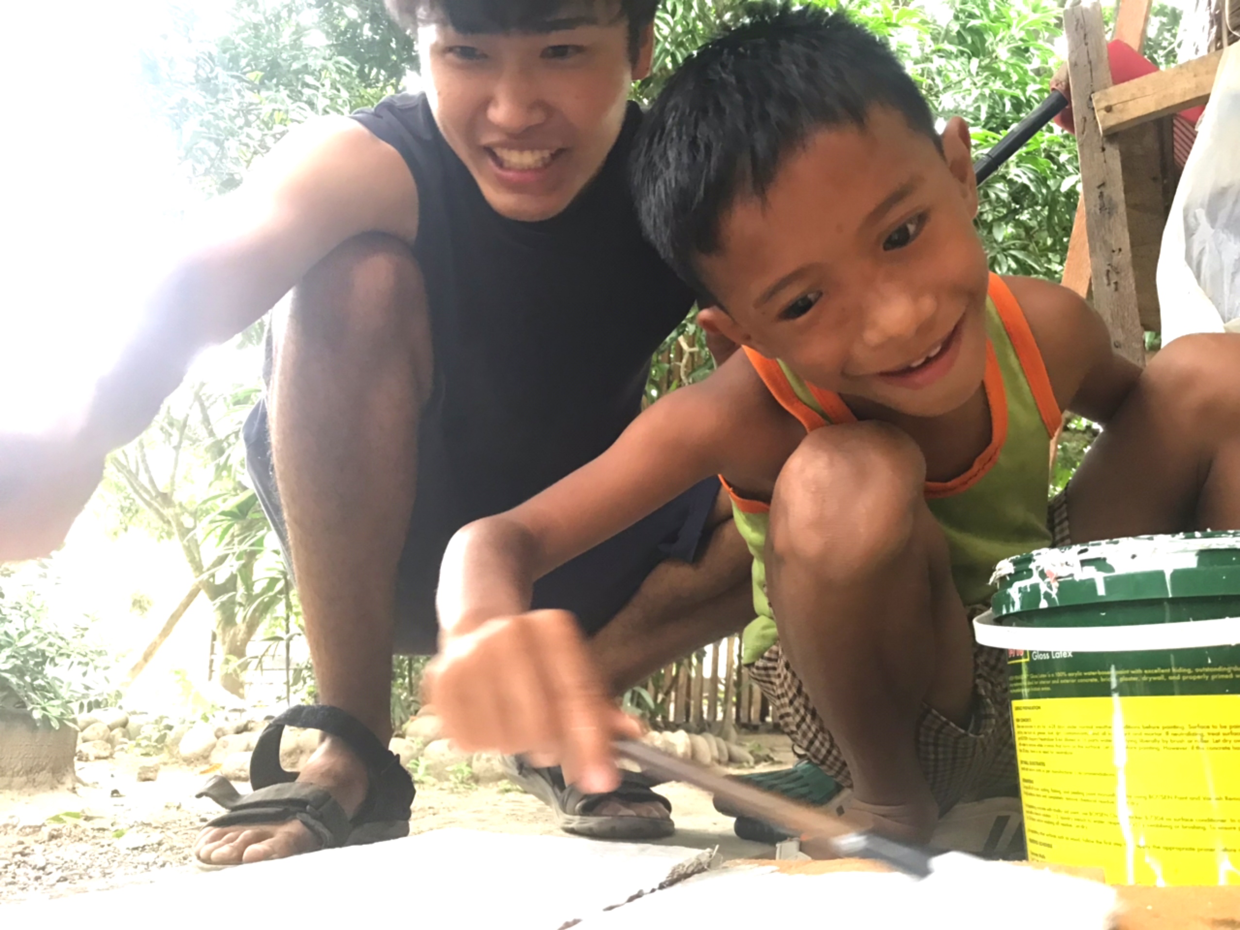 自分たち用のゴールポストは自分たちで作ろう!と、小さい子達が色ぬりをお手伝い。