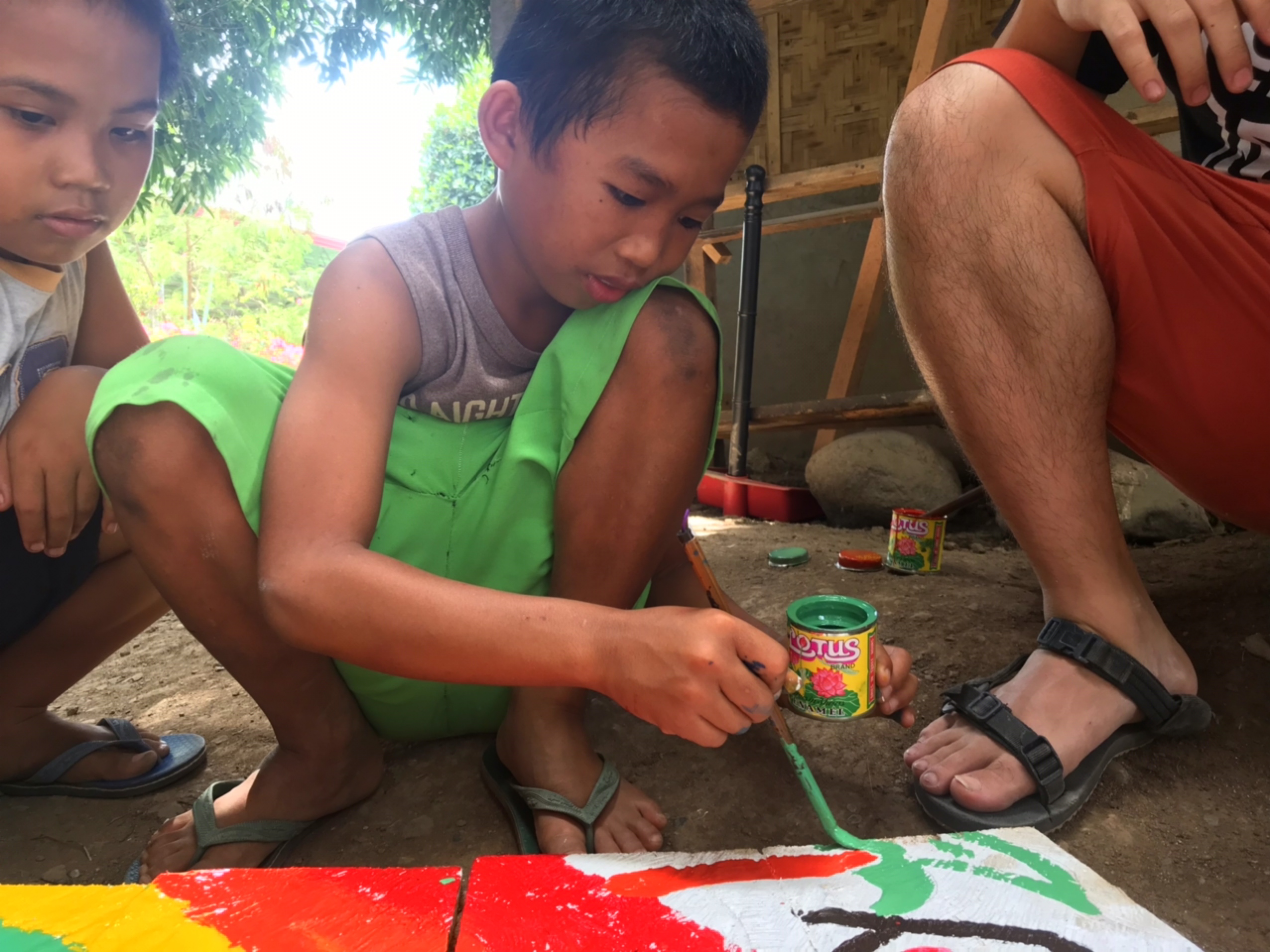 いたずらっ子で集中力の続かないマイケルが筆を持った瞬間、大人達は「大丈夫かな…」と思ったのですが、驚いたことにとても丁寧に色を塗るマイケル…!