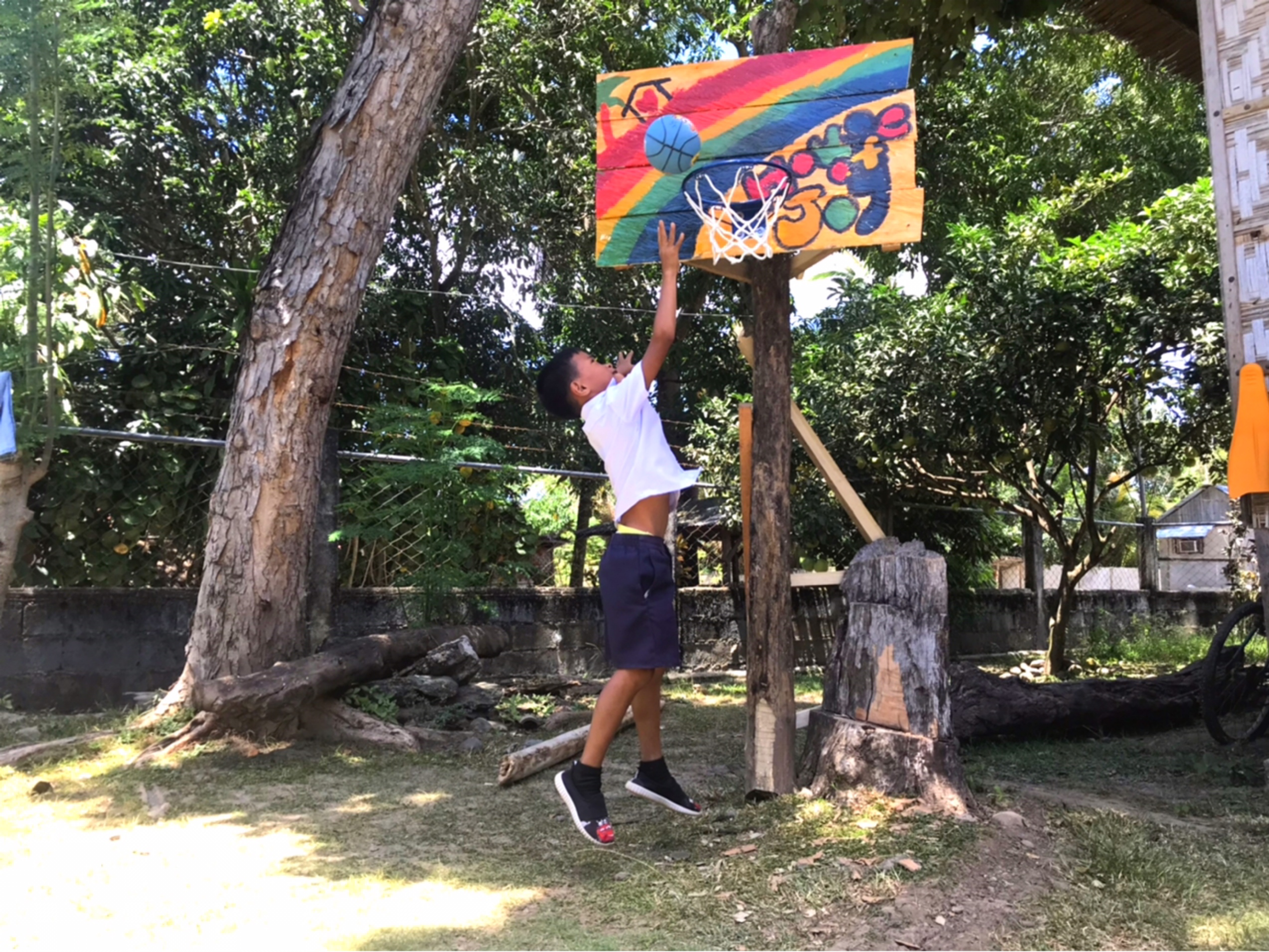 昨日ミサトさんがアップしてくれましたがバスケゴールが修復されて大喜びだったこどもたちの動画を
