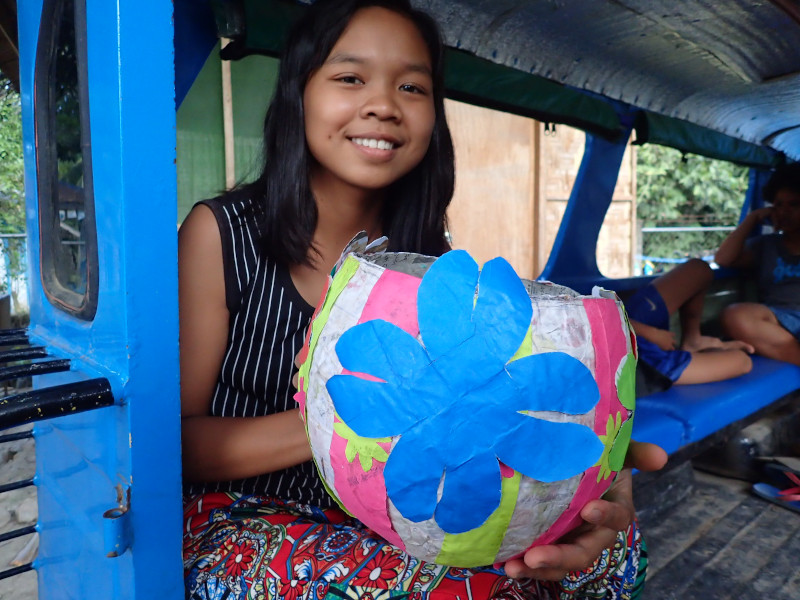 「来週提出のこの宿題、せっかく作ったのに…」とロスジェーンはちょっと残念そう。張り子の花瓶、かなりの自信作だったようです。