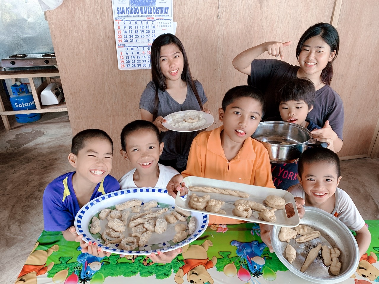 ジュリアンがリーダーとなって小さい子たちをまとめます。500gのレシピを2倍にしてスタッフまで皆にパンが行き渡るように作ります。一方のチームはジュリアンが、一方のチームはジェレミーが主に作り姉弟でリーダーとなって仕切ります。前回作った時、料理好きのジェレミーが子供達代表で参加していて今回は頼り強い存在です。