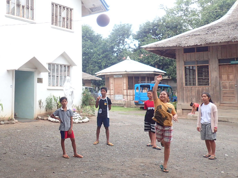 「バスケやったことある?一緒にやろう!」とこどもたちがさっそく遊びに誘います。