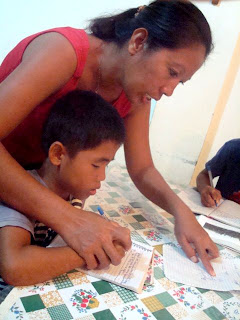 他の子たちに授業をしています。自分の宿題は後回し。