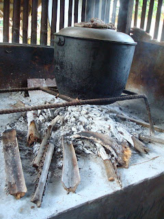 ハウスオブジョイのこどもたち40人のごはんを炊く鍋。薪はヤシの枝です。豪快ですね。