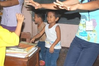 折り紙授業の疲れも見せず、汗を流しながら子供たちと一心不乱に踊ります。