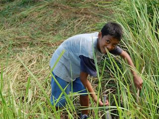 昨日はダーウィンも参加して、料理の薪に使うヤシの枝を採集していました。