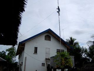 アルチーが「ロジャー・アンテナ」にのぼって何かしています。