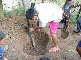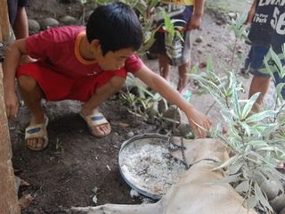 みんなで土をかけて埋め、最後に石と花を置いてお別れをしました。